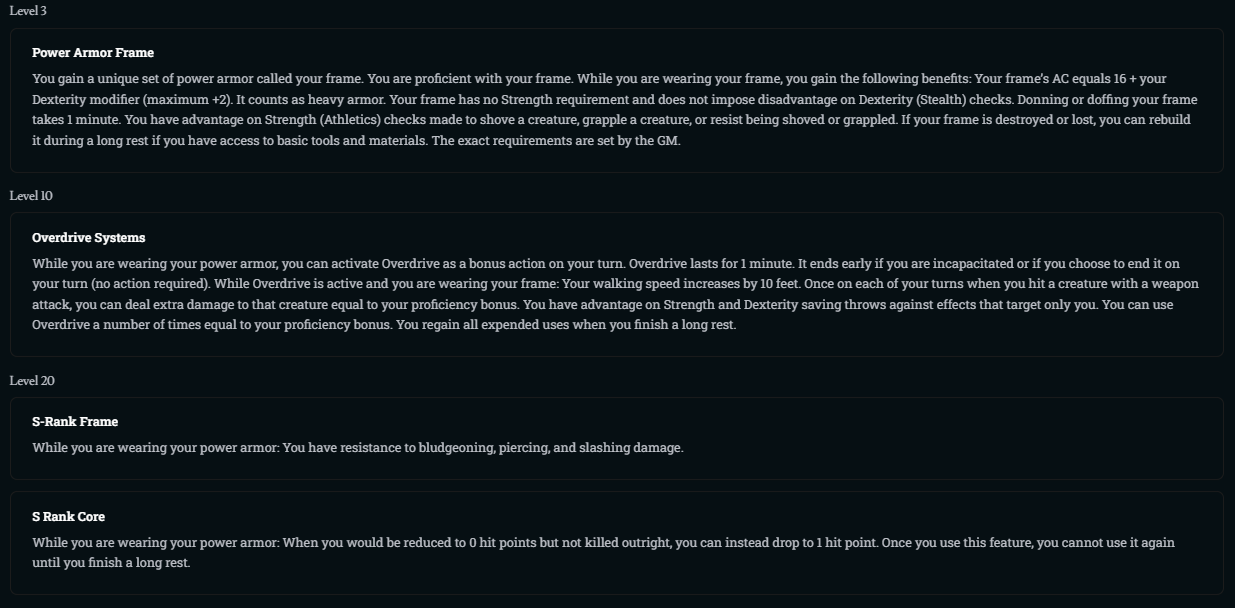 Name – The feature’s title (for example, “Power Armor Frame”)