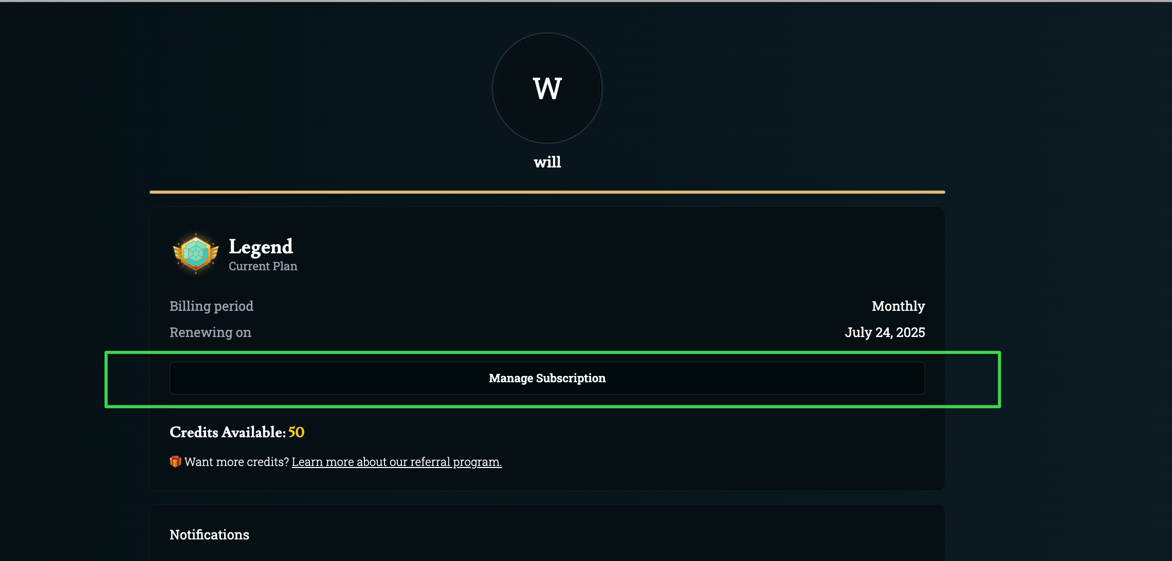 Then, click “Manage Subscription”