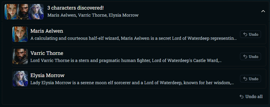 If you prefer to take control, you can open any generated NPC and edit their details, add lore, adjust relationships, or customize how Franz should portray them in future scenes. If you really like an NPC, you can even play as them in your game or save them to your workshop to play with later.