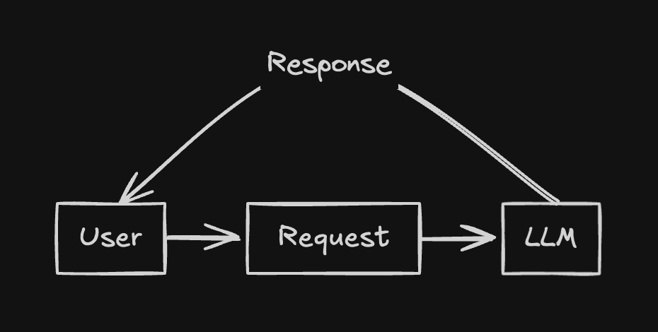 In a traditional AI chat application, you entirely manage the context through the text you send in a message and a single request is sent to the LLM when you send a message.