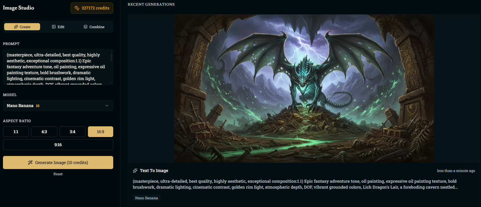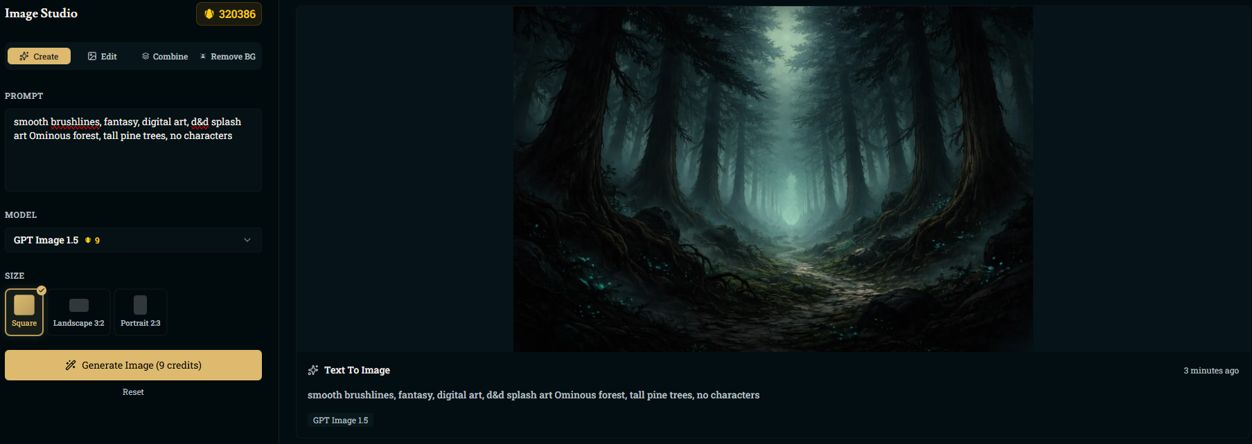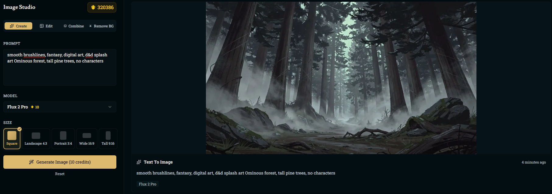 Use the Image Studio to create world art, character portraits, maps, item art, cover illustrations, concept pieces, and anything else you want for your campaign.