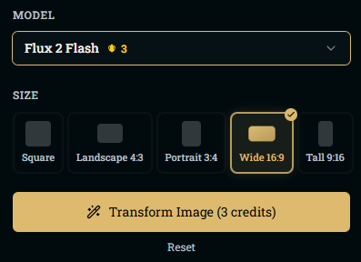 Choose Flux 2 Flash, GPT Image 1.5, Flux 2 Pro, Nano Banana, Seedream or Nano Banana Pro
