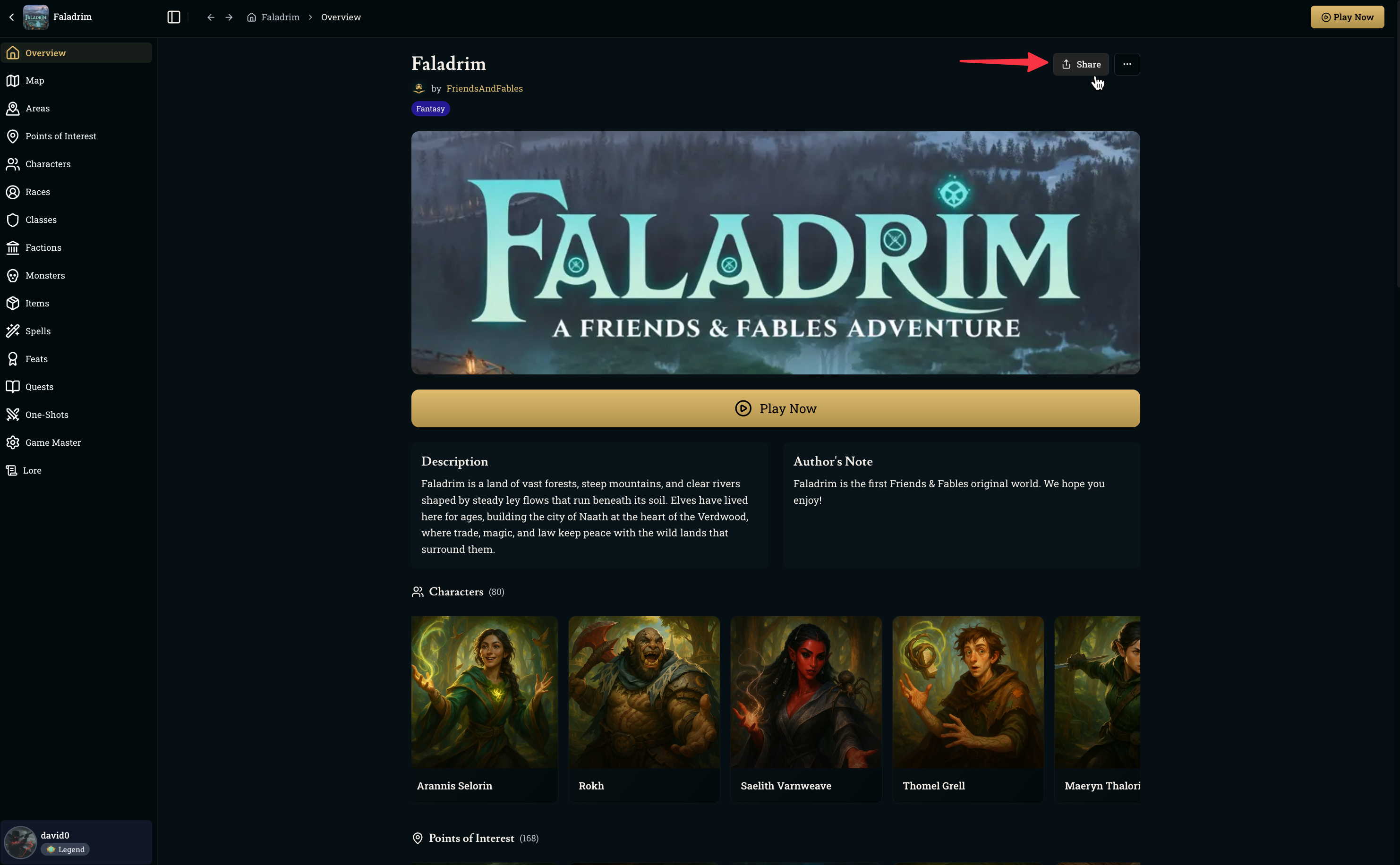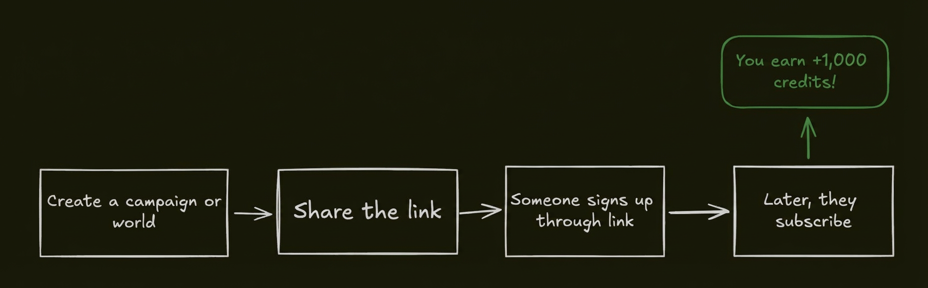 Earn credits by sharing your worlds and inviting friends to join campaigns on Friends & Fables!